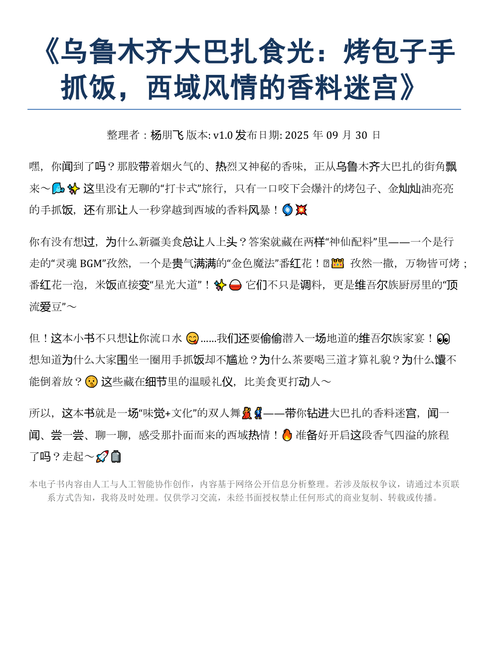 《乌鲁木齐大巴扎食光:烤包子手抓饭,西域风情》AI智慧电子书