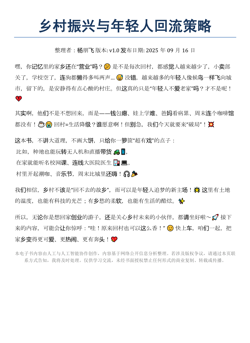 《乡村振兴与年轻人回流策略》AI智慧电子书