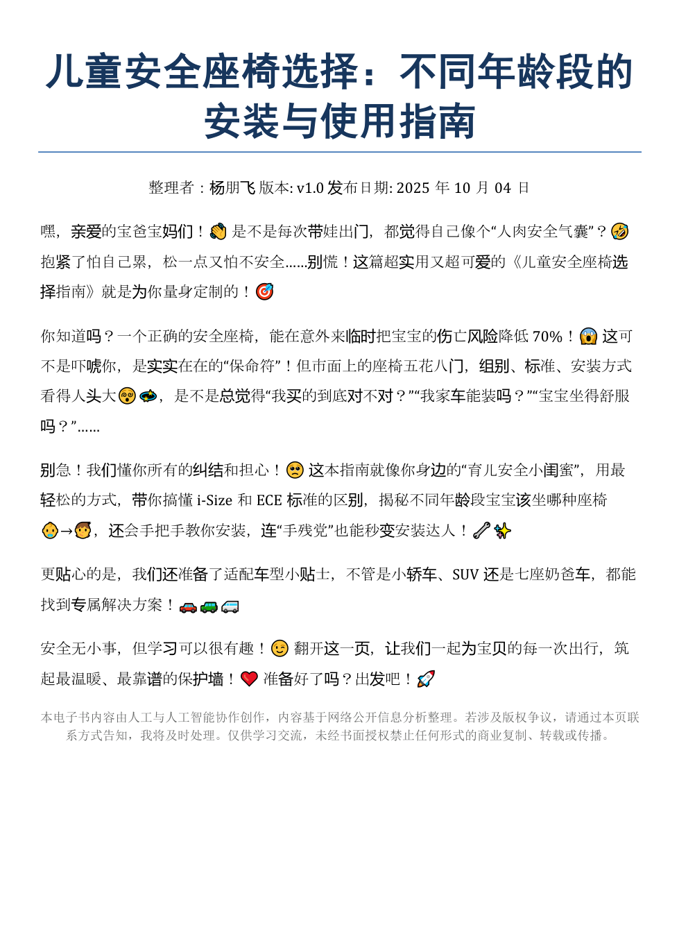 《儿童安全座椅选择:不同年龄段的安装与使用指南》AI智慧电子书