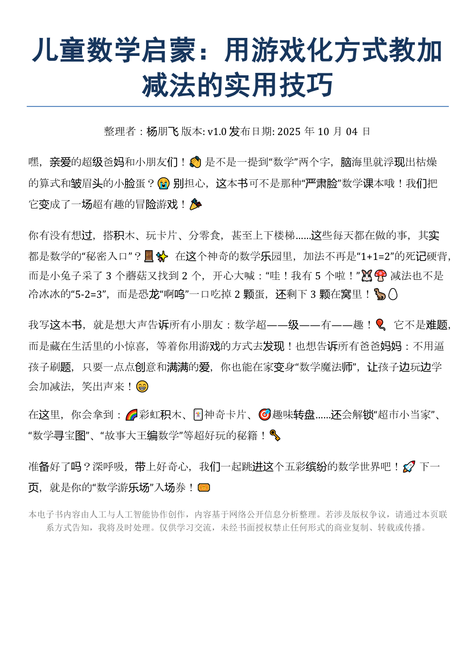 《儿童数学启蒙:用游戏化方式教加减法的实用技巧》AI智慧电子书