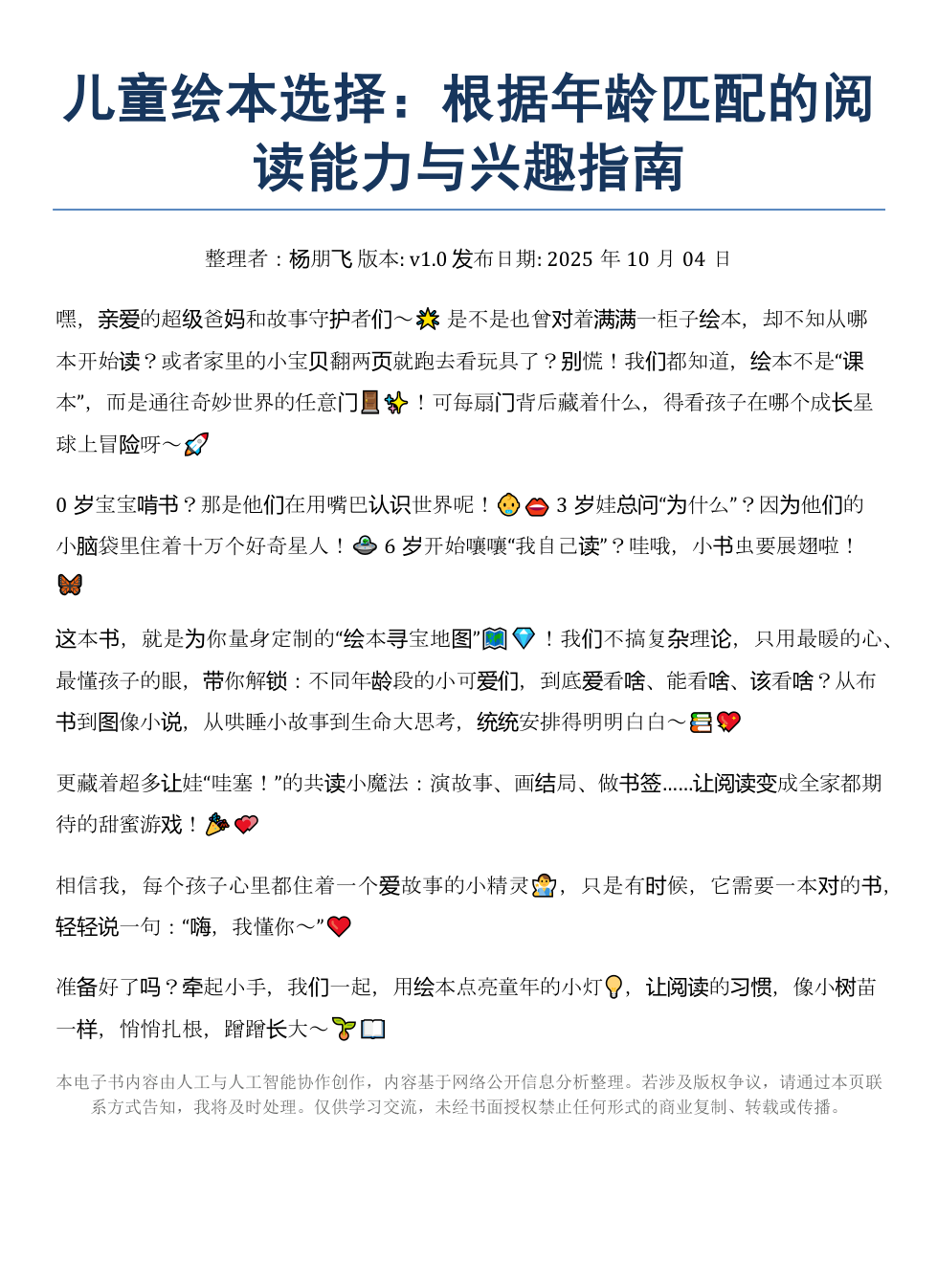 《儿童绘本选择:根据年龄匹配阅读能力兴趣指南》AI智慧电子书