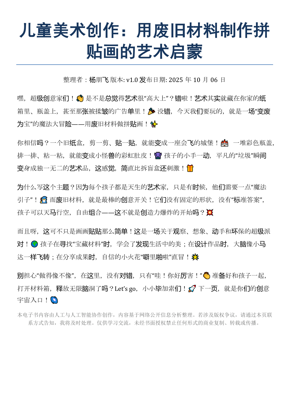 《儿童美术创作:用废旧材料制作拼贴画的艺术启蒙》AI智慧电子书