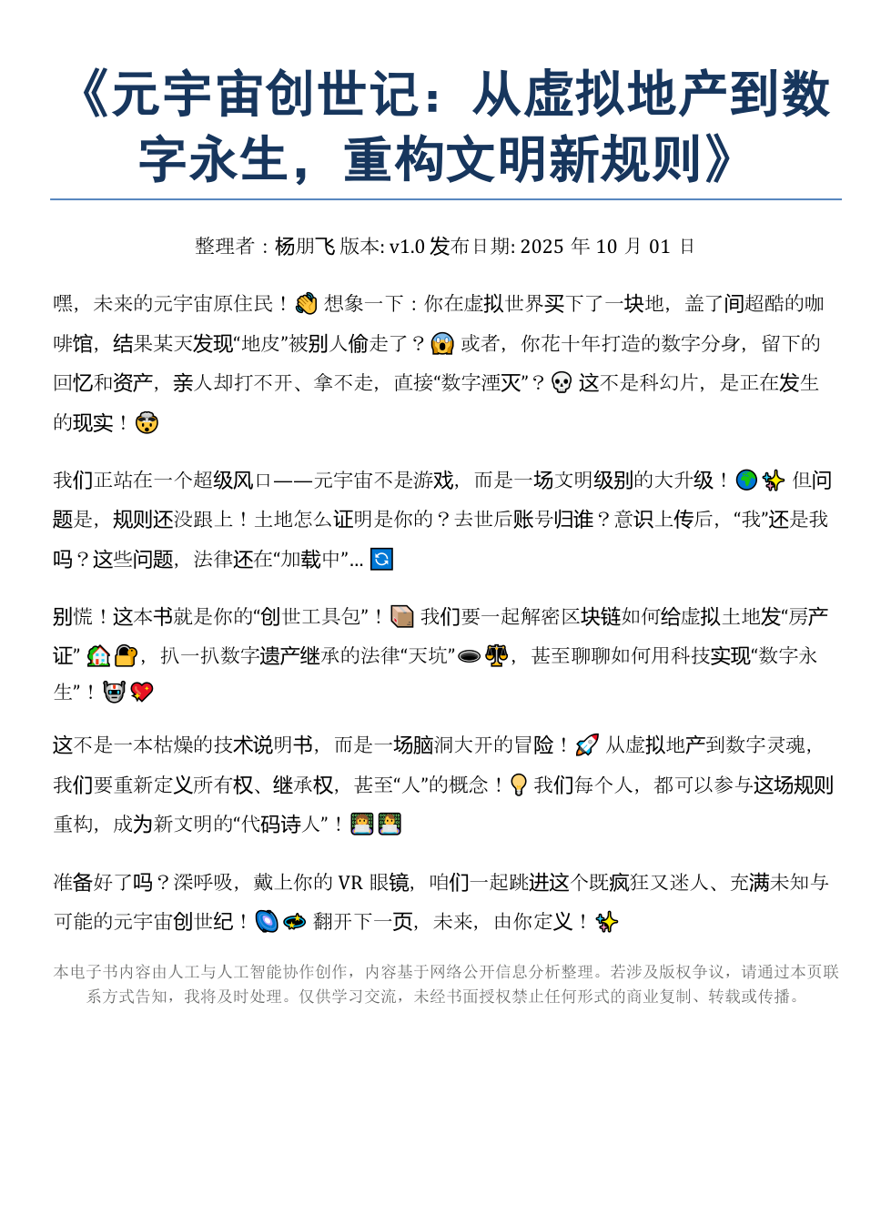 《元宇宙创世记:从虚拟地产到数字永生重构文明》AI智慧电子书