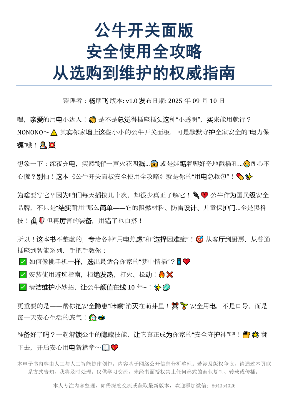 《公牛开关面版安全使用:从选购到维护的指南》AI智慧电子书
