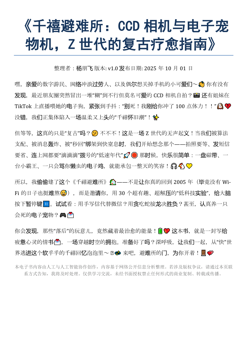 《千禧避难所:CCD相机与电子宠物机的Z世代指南》AI智慧电子书