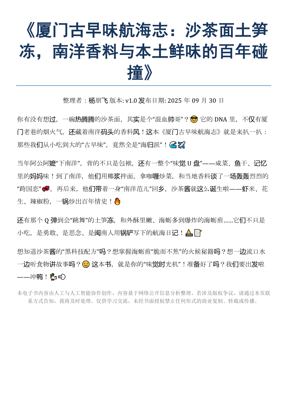 《厦门古早味航海志:沙茶面土笋冻的南洋香料碰撞》AI智慧电子书