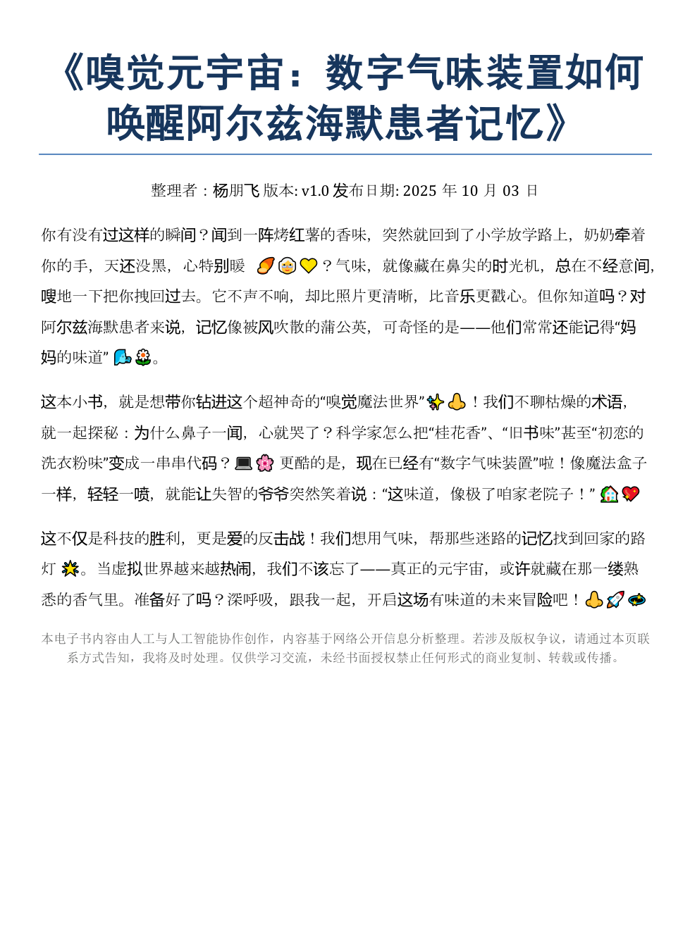 《嗅觉元宇宙:数字气味装置唤醒阿尔兹海默记忆》AI智慧电子书
