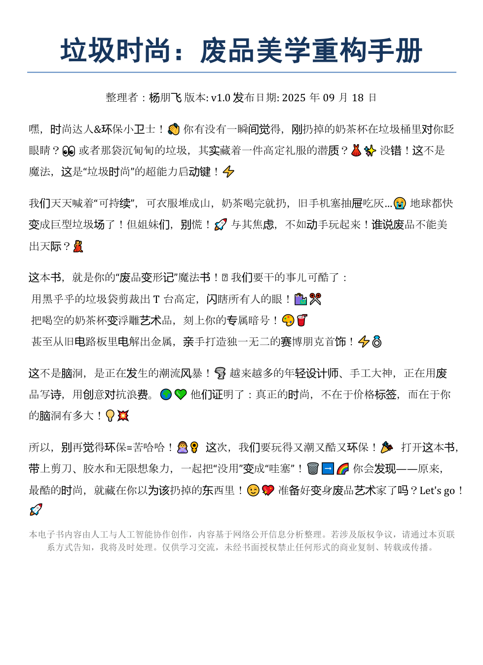 《垃圾时尚:废品美学重构手册》AI智慧电子书