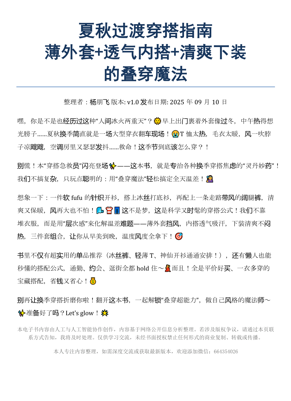 《夏秋过渡穿搭指南:薄透爽下装的叠穿魔法》AI智慧电子书