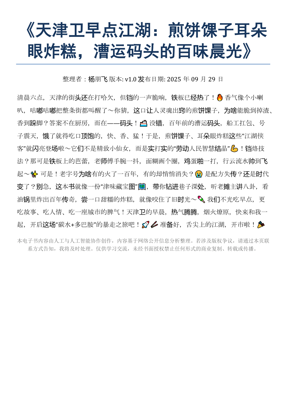 《天津卫早点江湖:煎饼馃子耳朵眼炸糕,百味晨光》AI智慧电子书