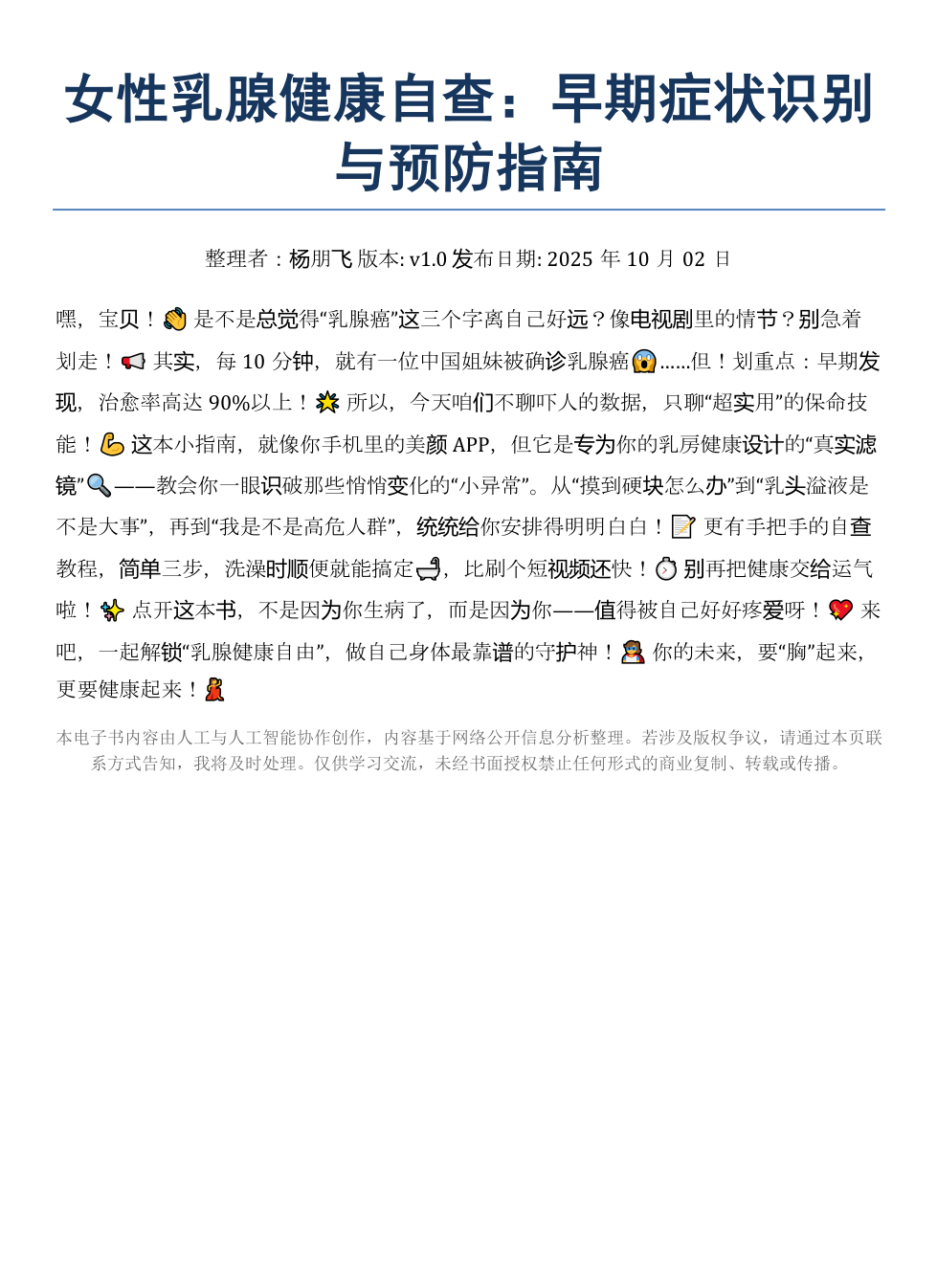 《女性乳腺健康自查:早期症状识别与预防指南》AI智慧电子书