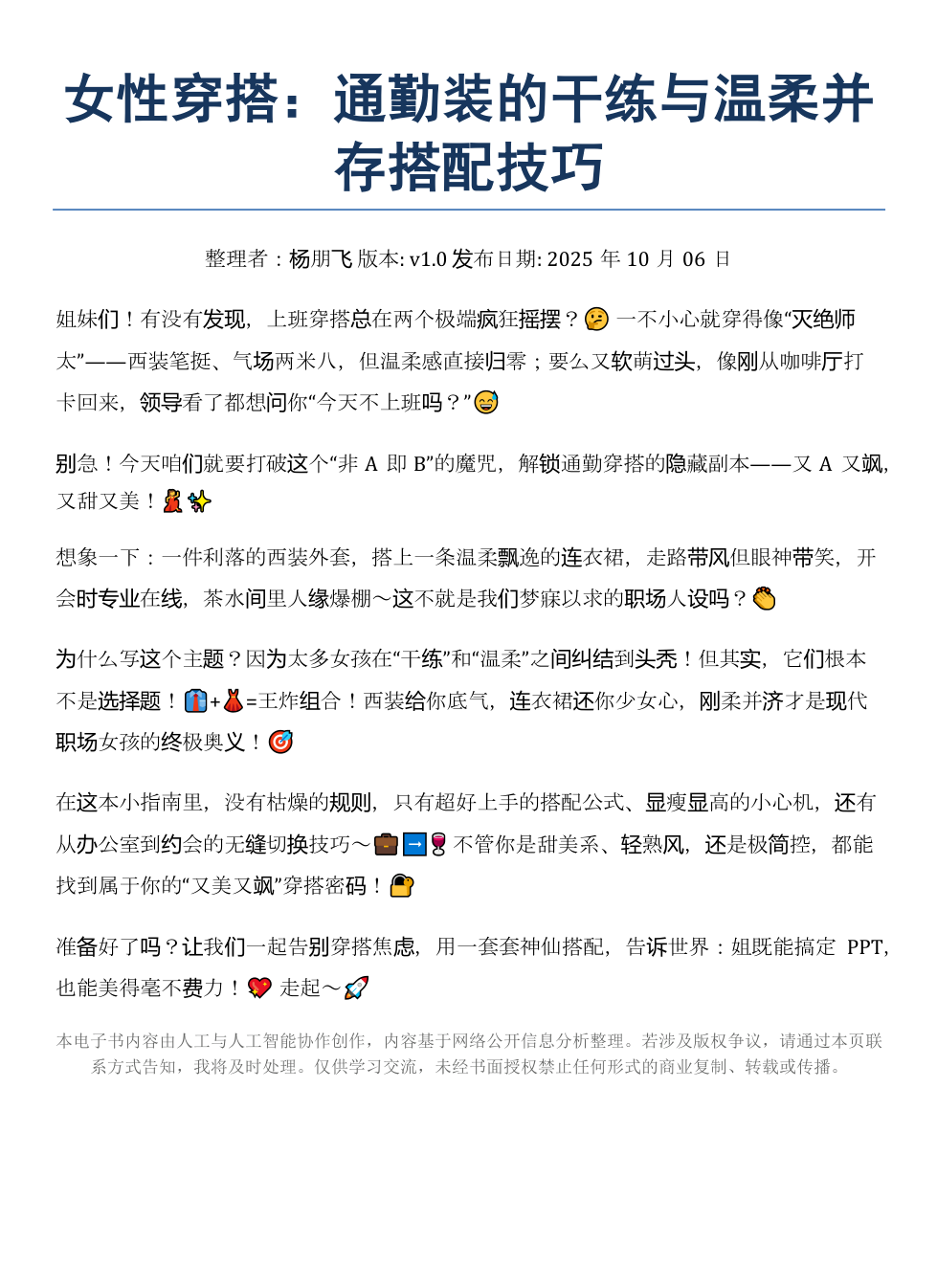 《女性穿搭:通勤装的干练与温柔并存搭配技巧》AI智慧电子书