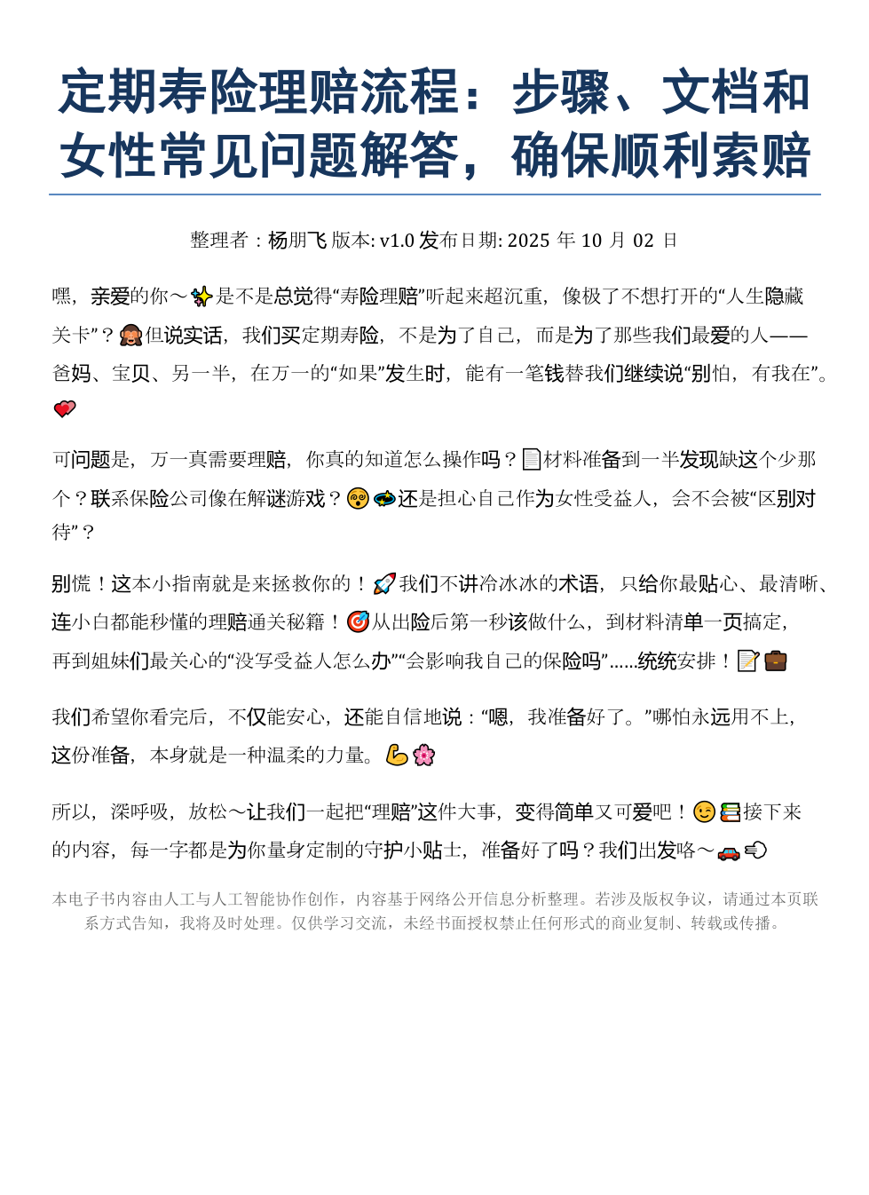 《定期寿险理赔:步骤文档女性问题解答索赔》AI智慧电子书