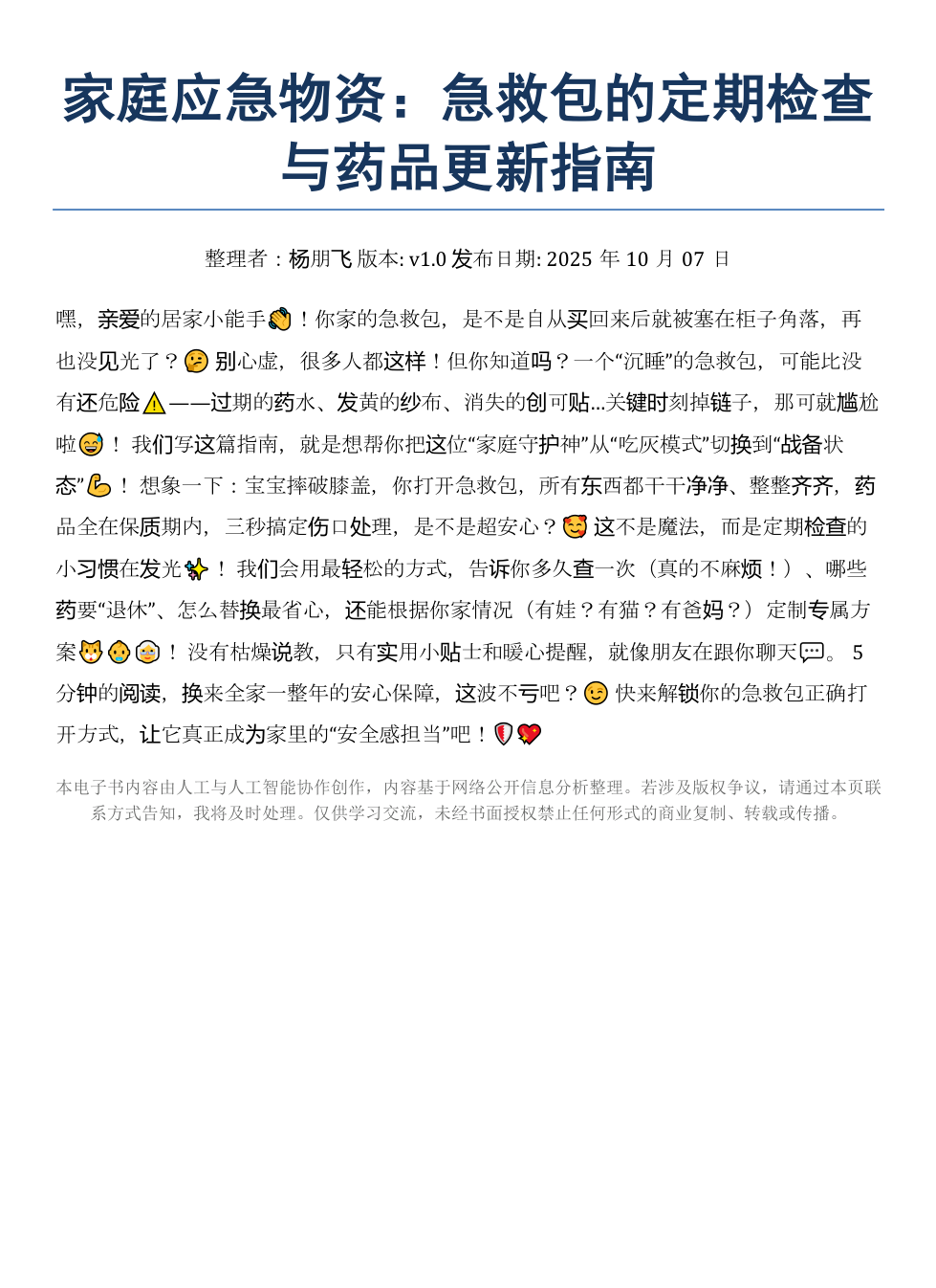 《家庭应急物资:急救包的定期检查与药品更新指南》AI智慧电子书