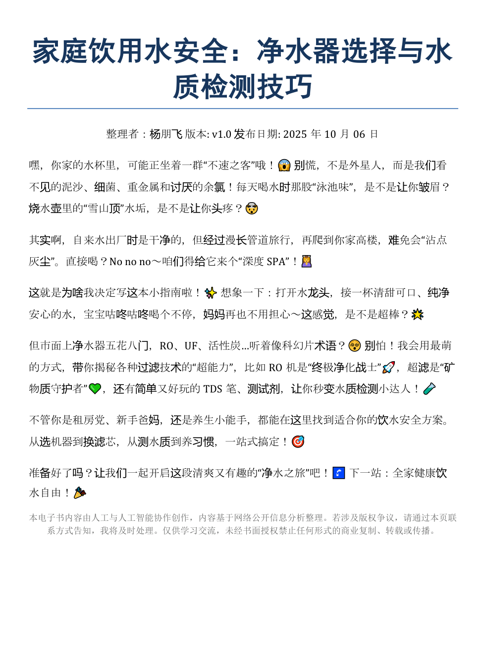《家庭饮用水安全:净水器选择与水质检测技巧》AI智慧电子书