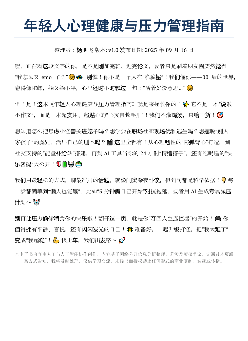 《年轻人心理健康与压力管理指南》AI智慧电子书