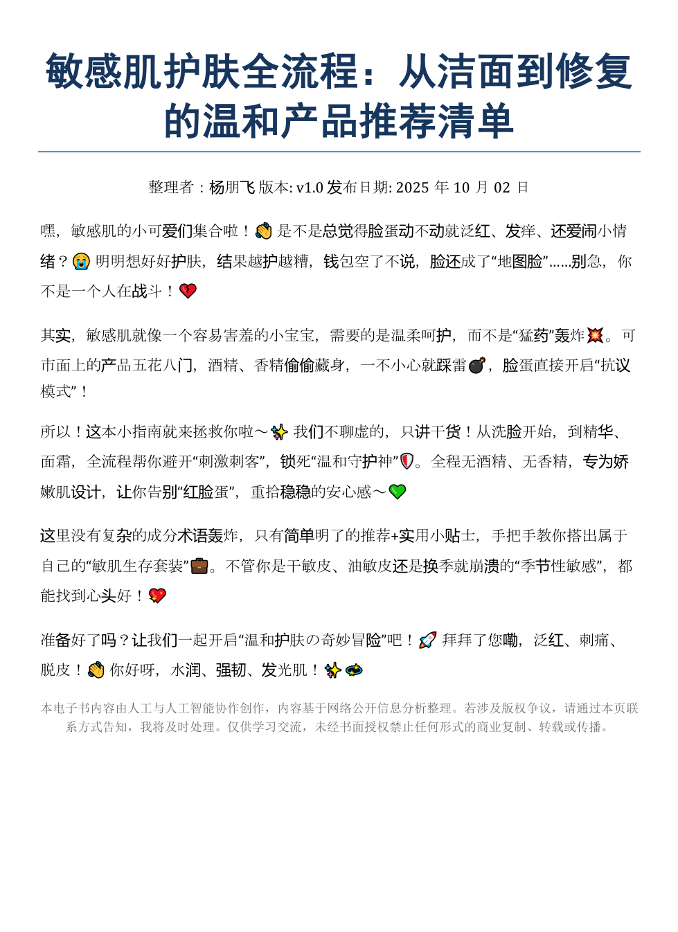《敏感肌护肤:洁面到修复温和产品推荐清单》AI智慧电子书