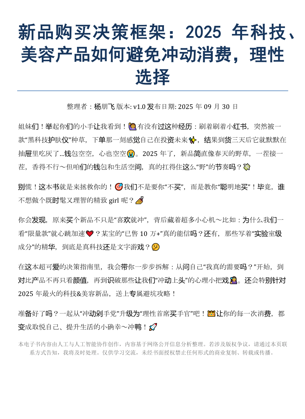 在这本超可爱的决策指南里,我会带你一步步拆解:从问自己“我真的需要吗?”开始,到对比产品不再只看颜值,再到识破那些让我们“冲动上头”的心理小把戏🧙♀️。还会特别针对2025年最火的科技&美容新品,送上专属避坑攻略!