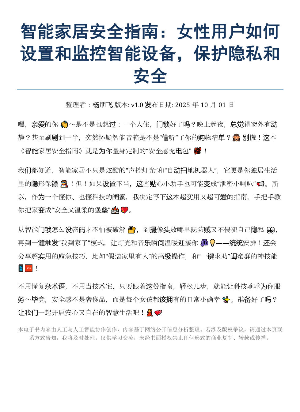 《智能家居安全:女性设置监控智能设备指南》AI智慧电子书