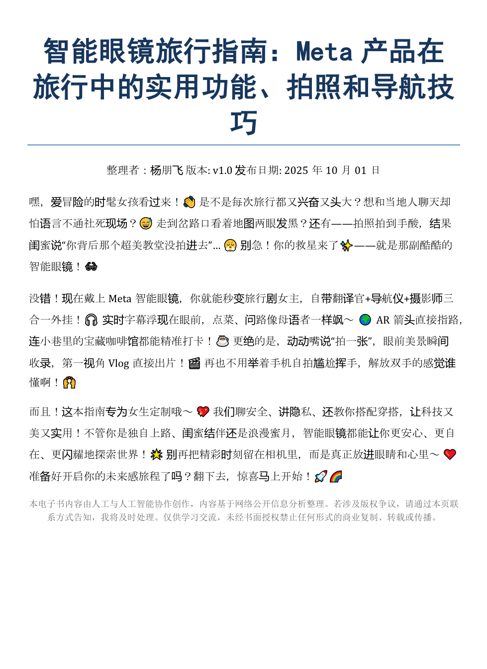 《智能眼镜旅行:Meta产品拍照导航实用技巧》AI智慧电子书