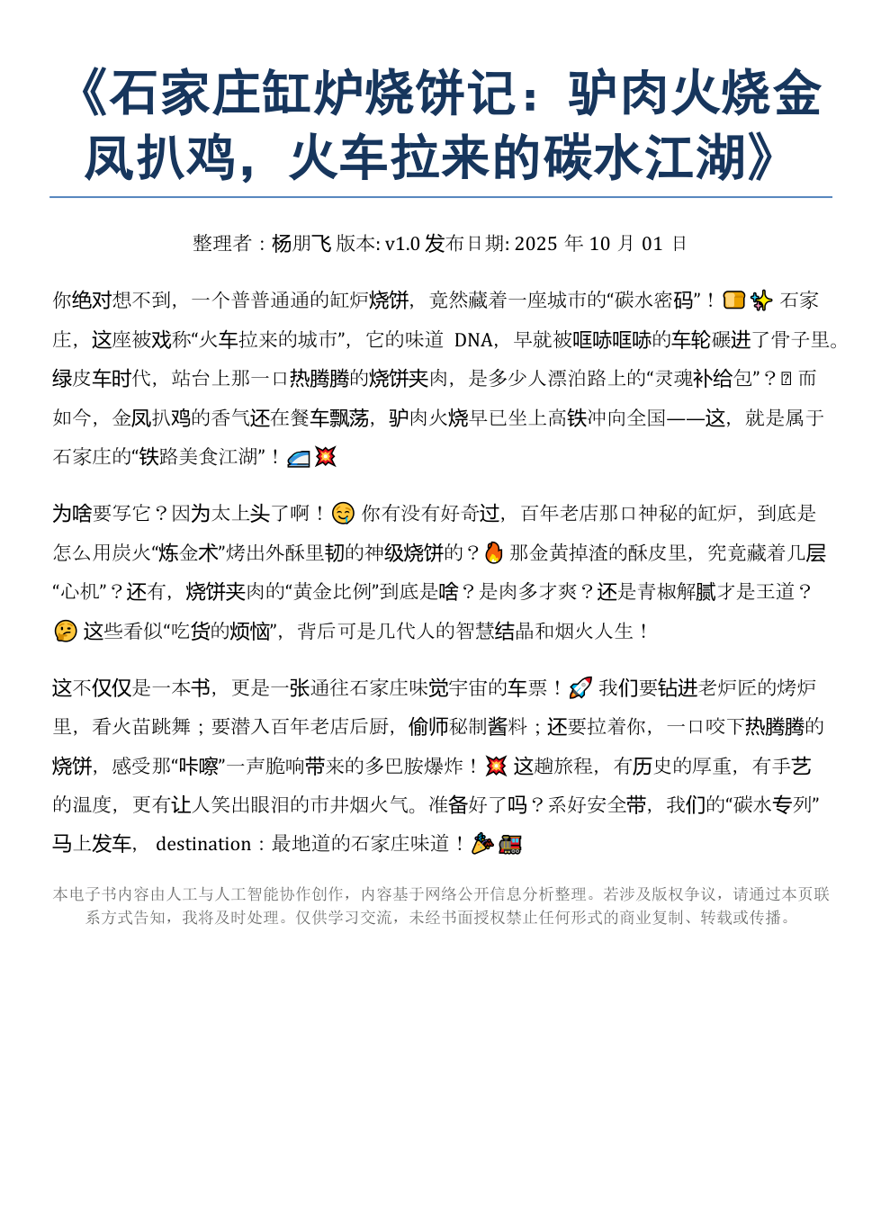 《石家庄缸炉烧饼:驴肉火烧金凤扒鸡的碳水江湖》AI智慧电子书