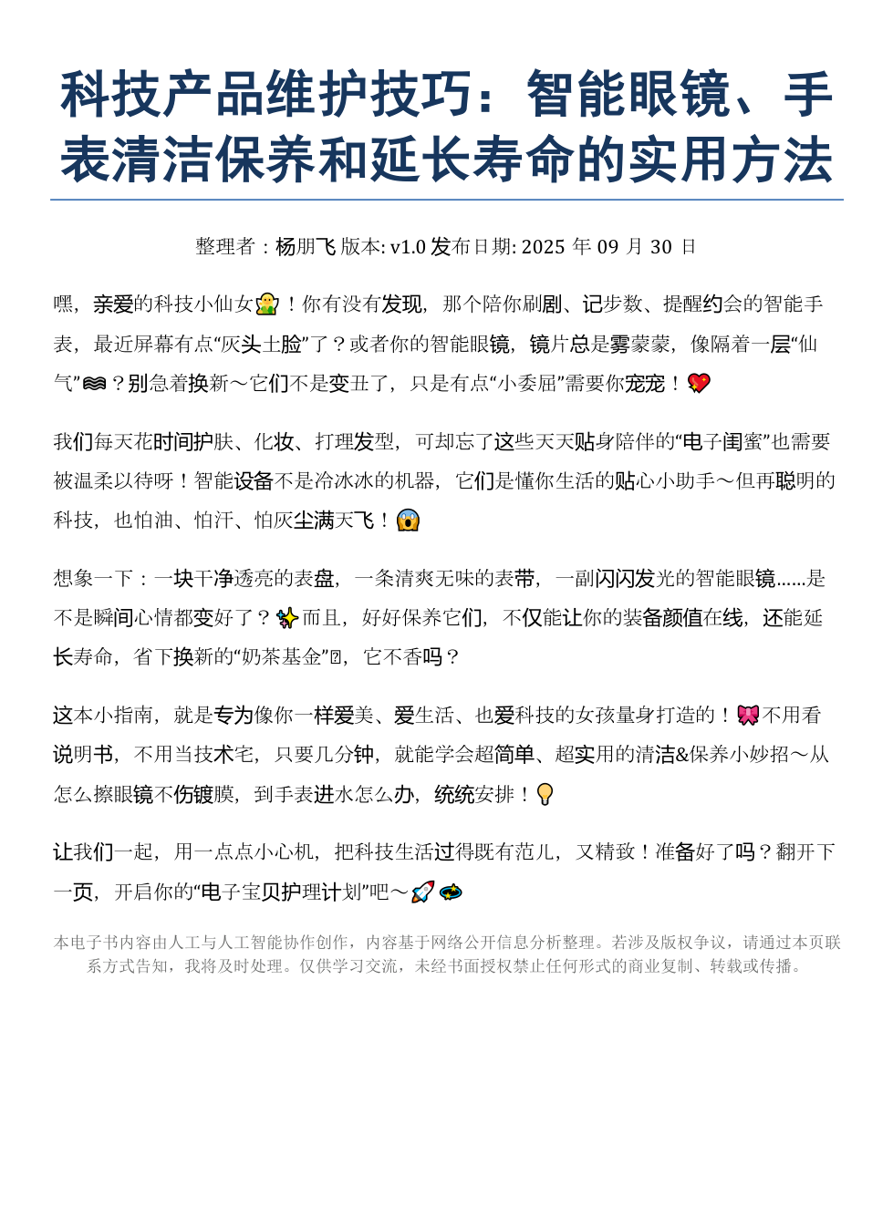 《科技产品维护:智能眼镜手表保养实用方法》AI智慧电子书