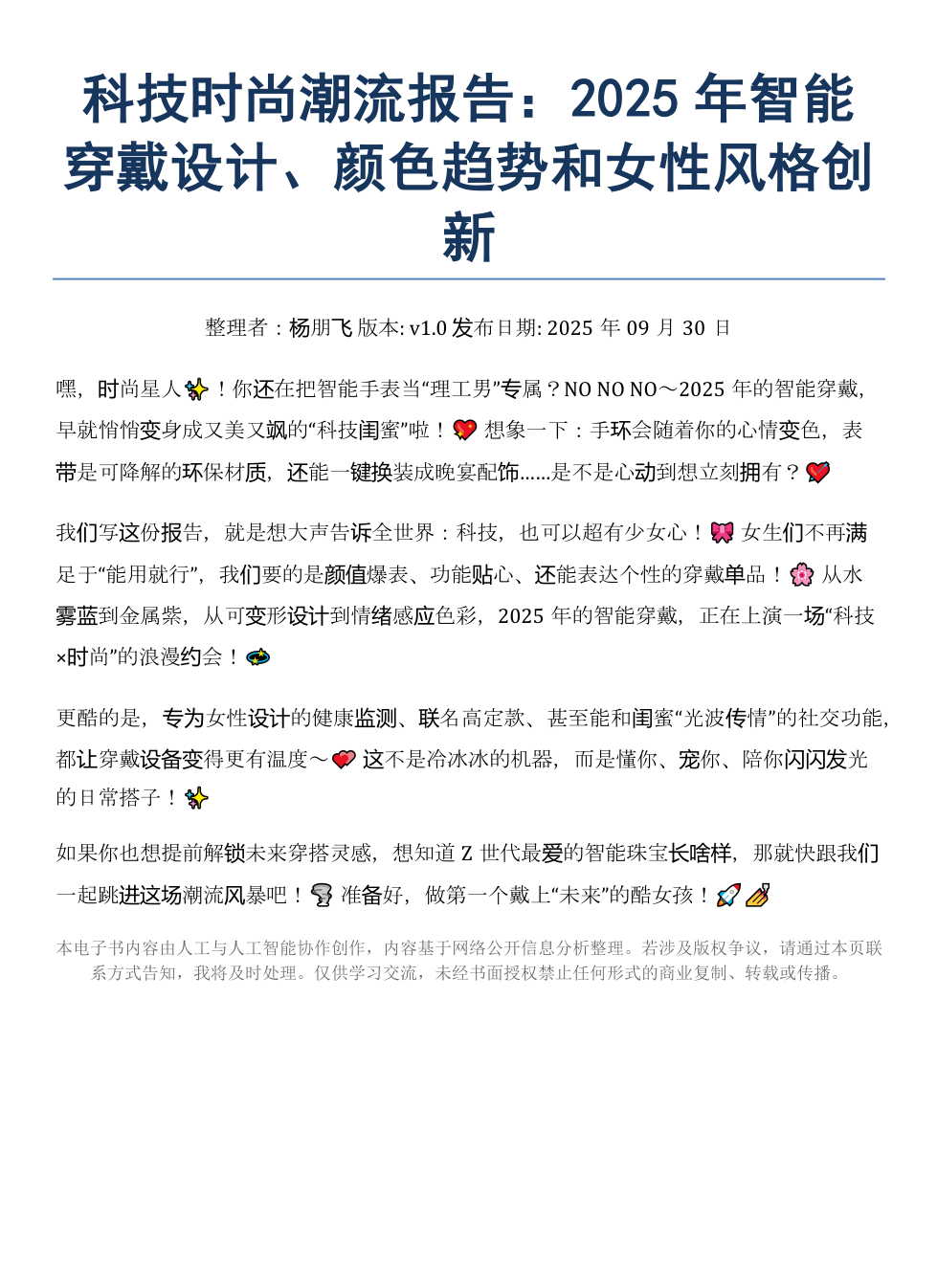 我们写这份报告,就是想大声告诉全世界:科技,也可以超有少女心!🎀 女生们不再满足于“能用就行”,我们要的是颜值爆表、功能贴心、还能表达个性的穿戴单品!🌸 从水雾蓝到金属紫,从可变形设计到情绪感应色彩,2025年的智能穿戴,正在上演一场“科技×时尚”的浪漫约会!💫