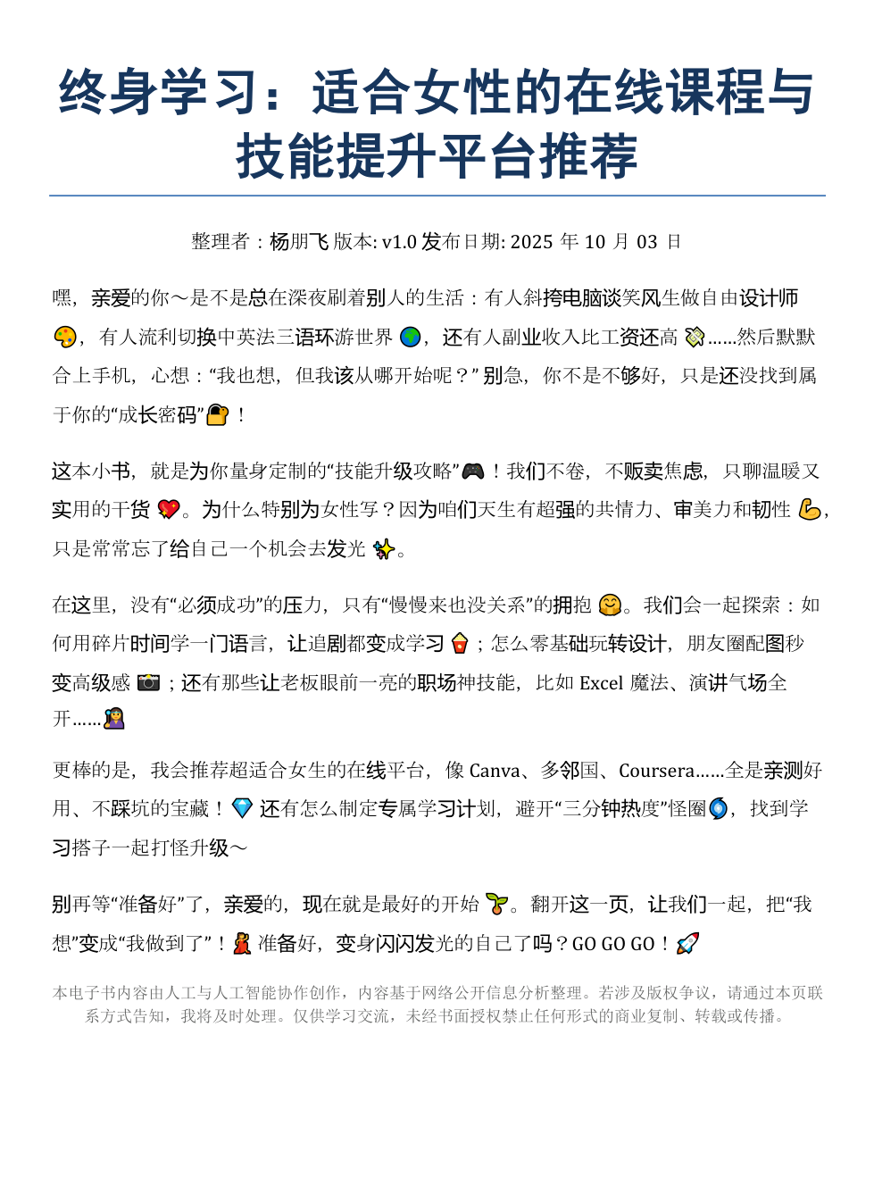 《终身学习:适合女性在线课程技能提升平台推荐》AI智慧电子书