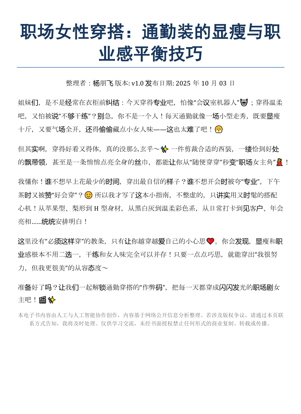《职场女性穿搭:通勤装的显瘦与职业感平衡技巧》AI智慧电子书