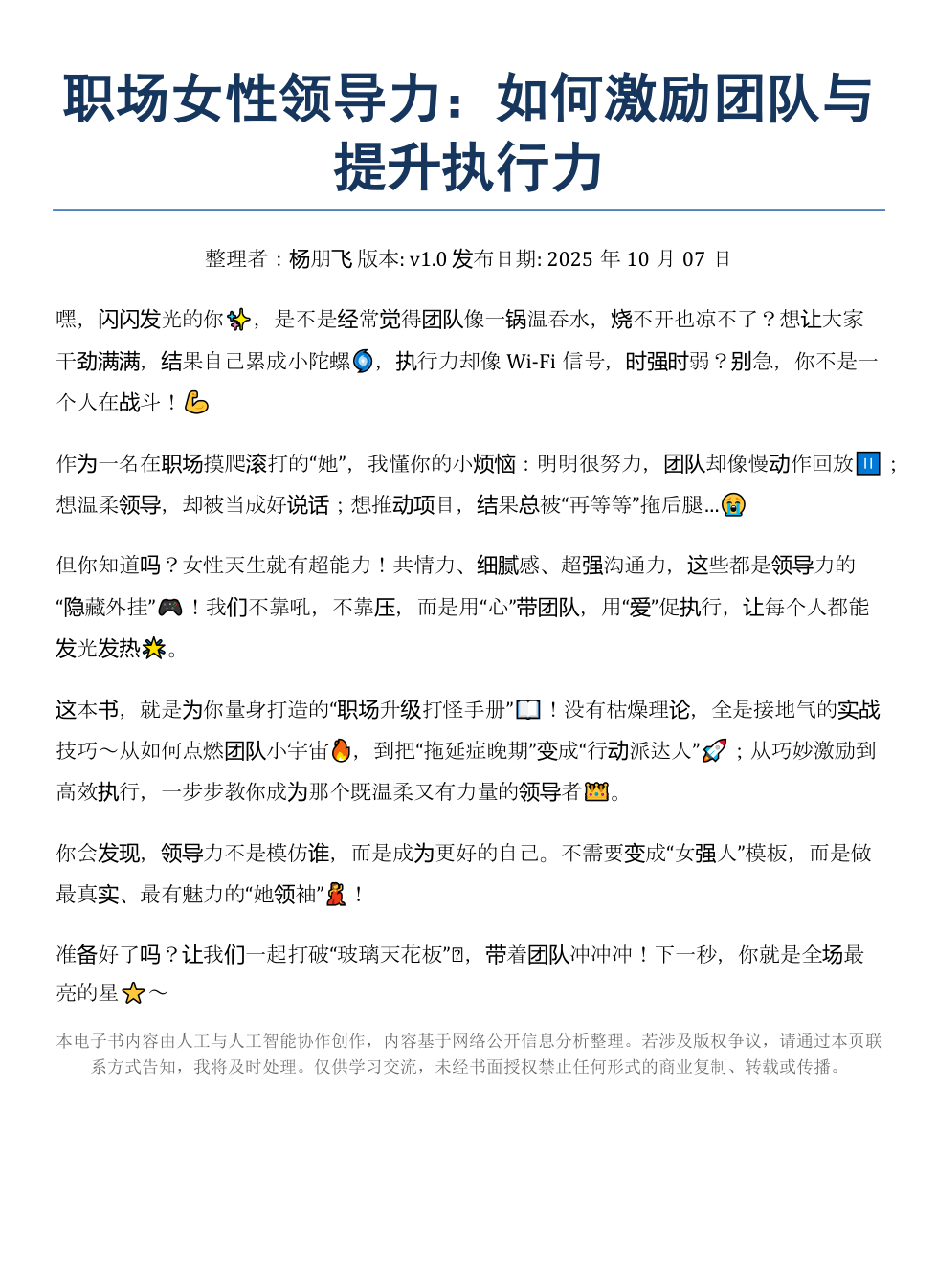 《职场女性领导力:如何激励团队与提升执行力》AI智慧电子书
