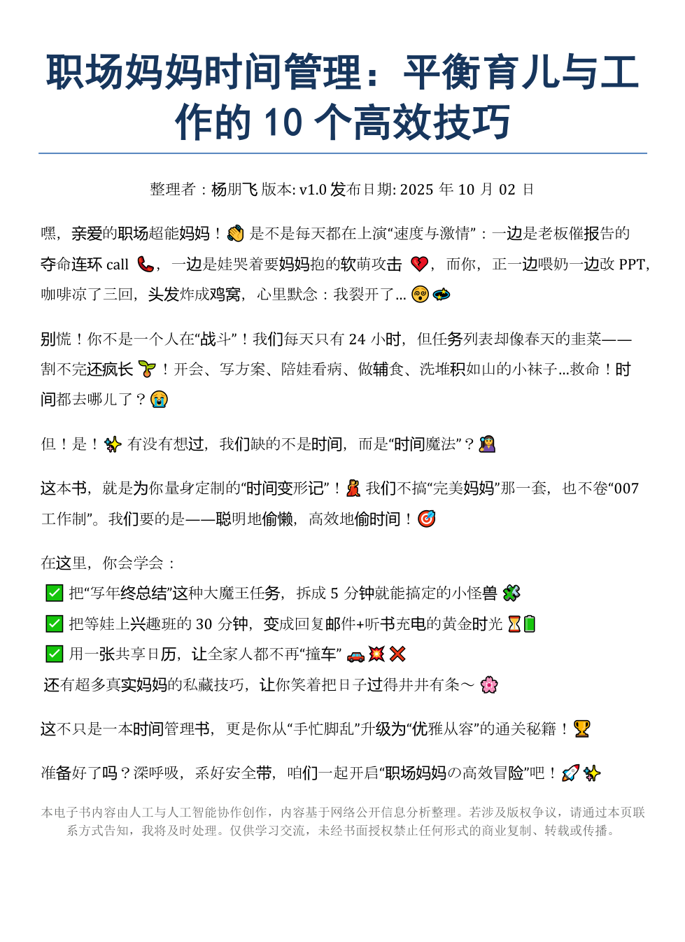《职场妈妈时间:平衡育儿工作10个高效技巧》AI智慧电子书
