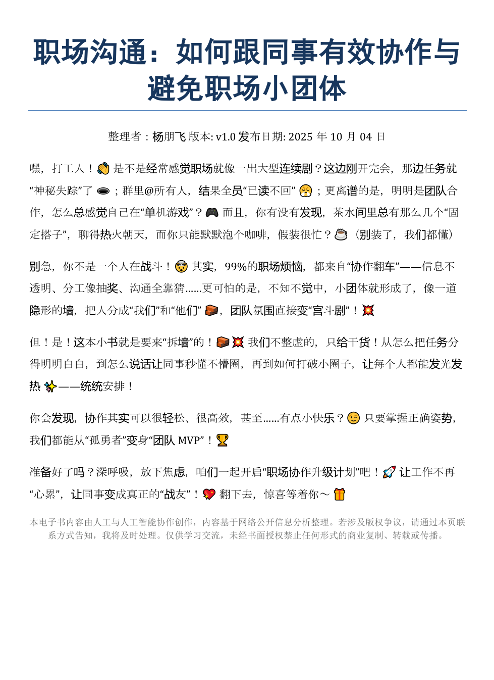 《职场沟通:如何跟同事有效协作与避免职场小团体》AI智慧电子书