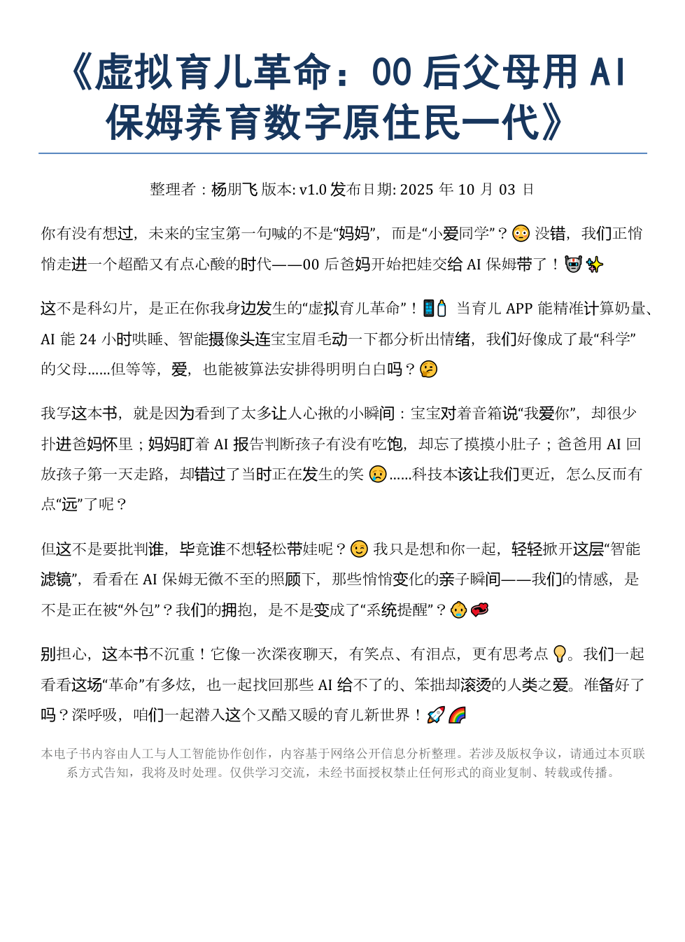 《虚拟育儿革命:00后父母用AI保姆养育原住民一代》AI智慧电子书