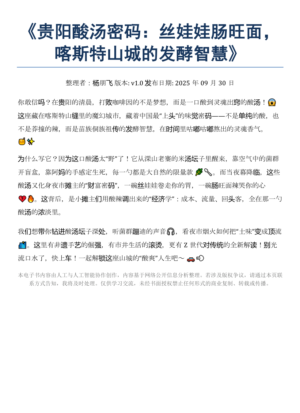 《贵阳酸汤密码:丝娃娃肠旺面,山城发酵智慧》AI智慧电子书