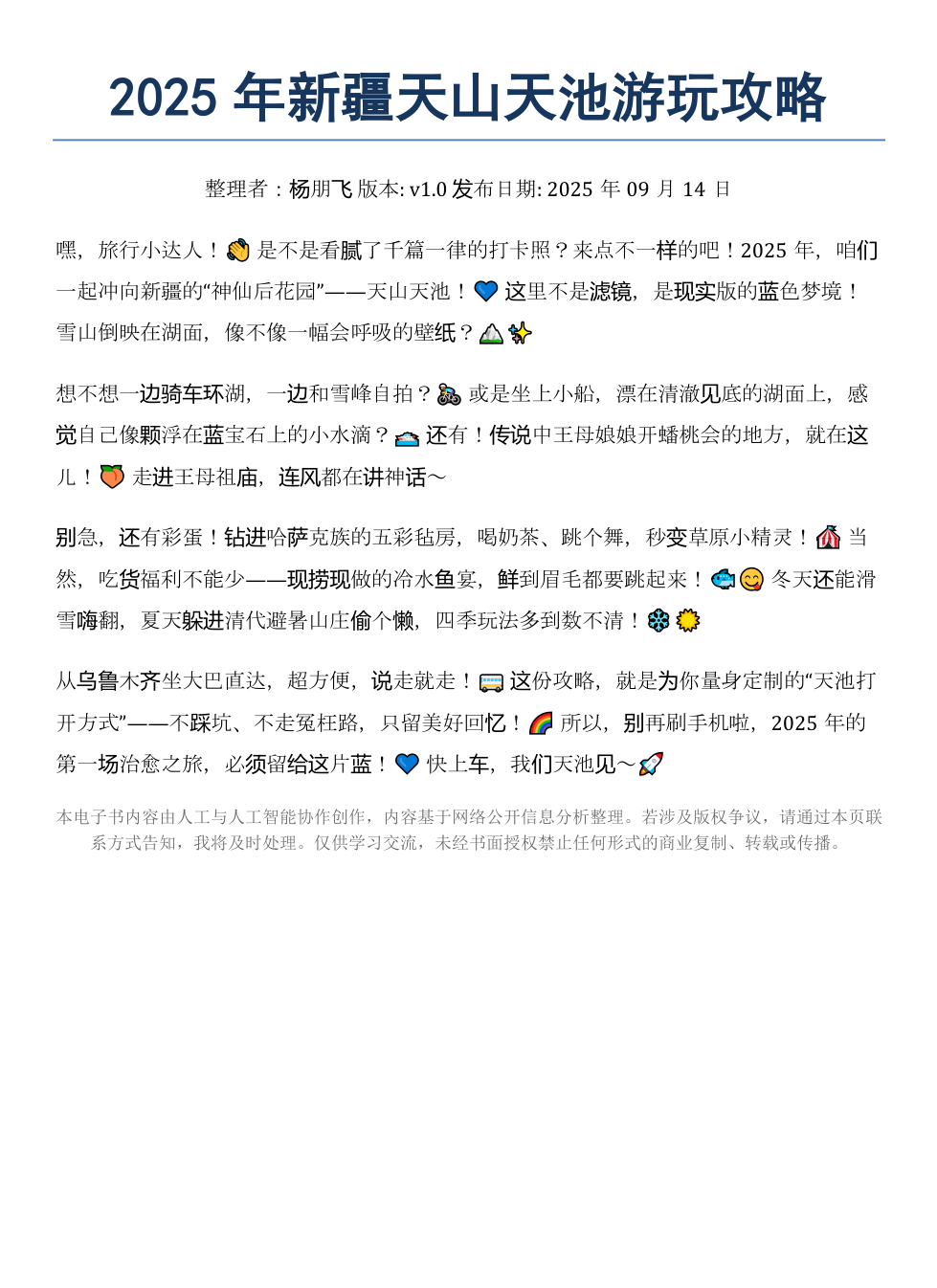 《2025年新疆天山天池游玩攻略》AI智慧电子书