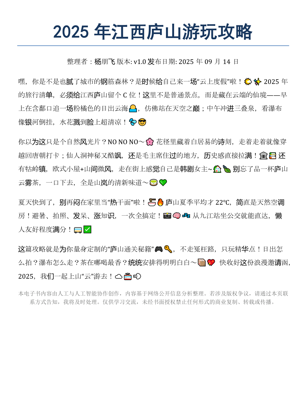 《2025年江西庐山游玩攻略》AI智慧电子书
