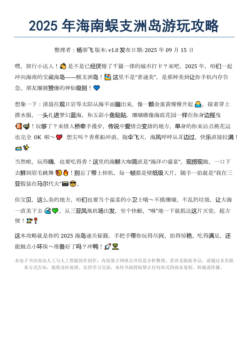 《2025年海南蜈支洲岛游玩攻略》AI智慧电子书