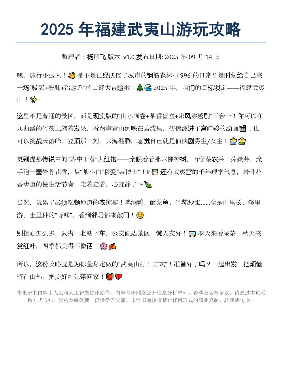 《2025年福建武夷山游玩攻略》AI智慧电子书