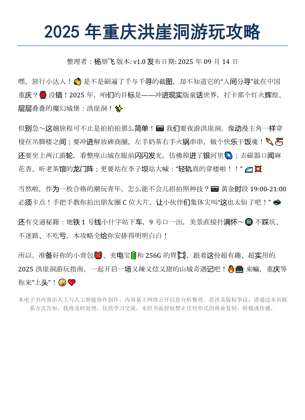 《2025年重庆洪崖洞游玩攻略》AI智慧电子书