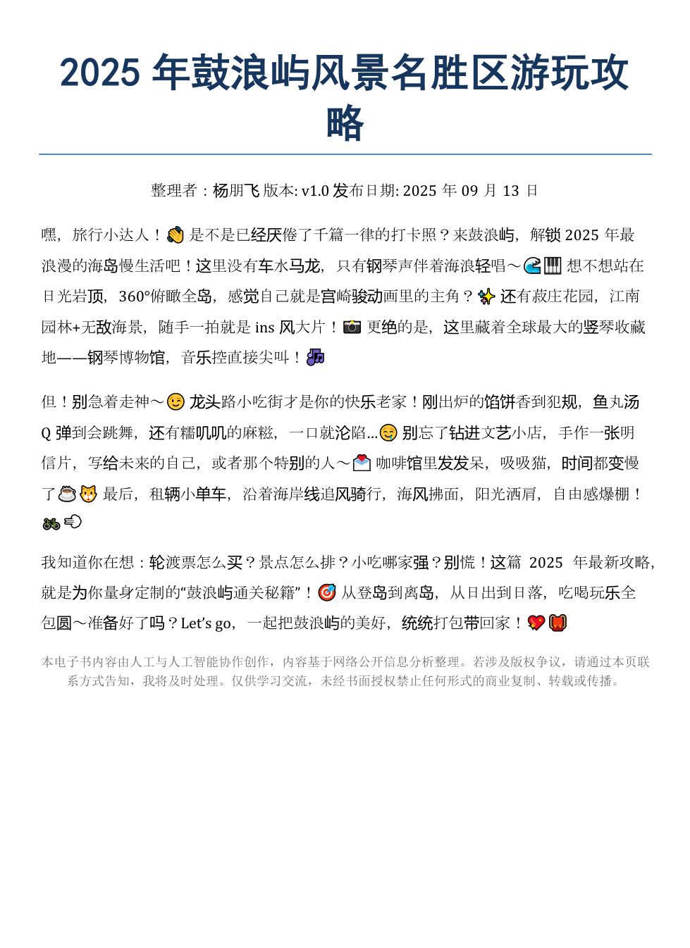 《2025年鼓浪屿风景名胜区游玩攻略》AI智慧电子书