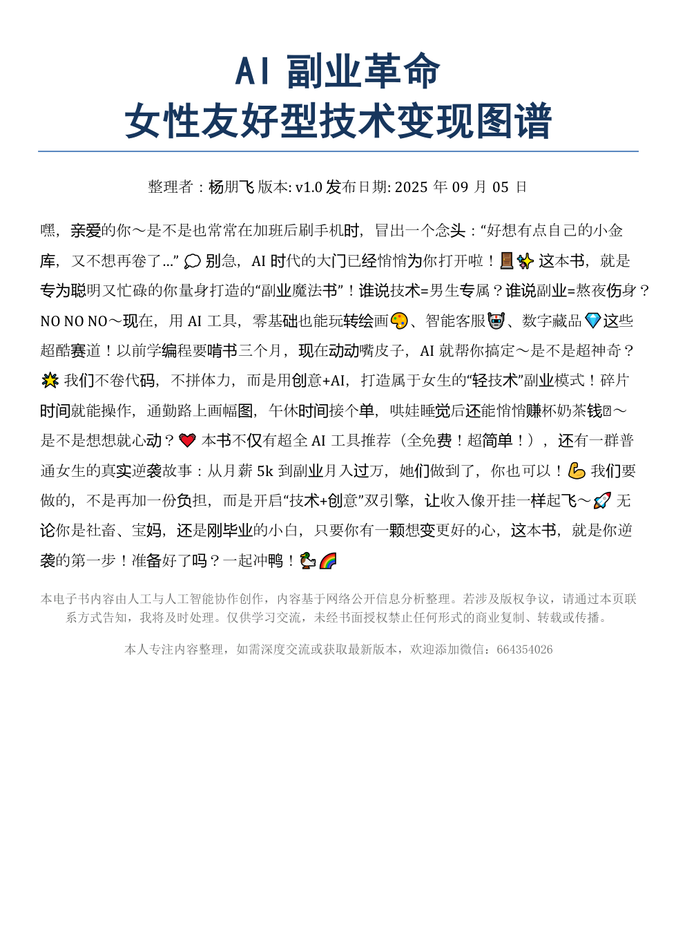 《AI副业革命:女性友好型技术变现图谱》AI智慧电子书