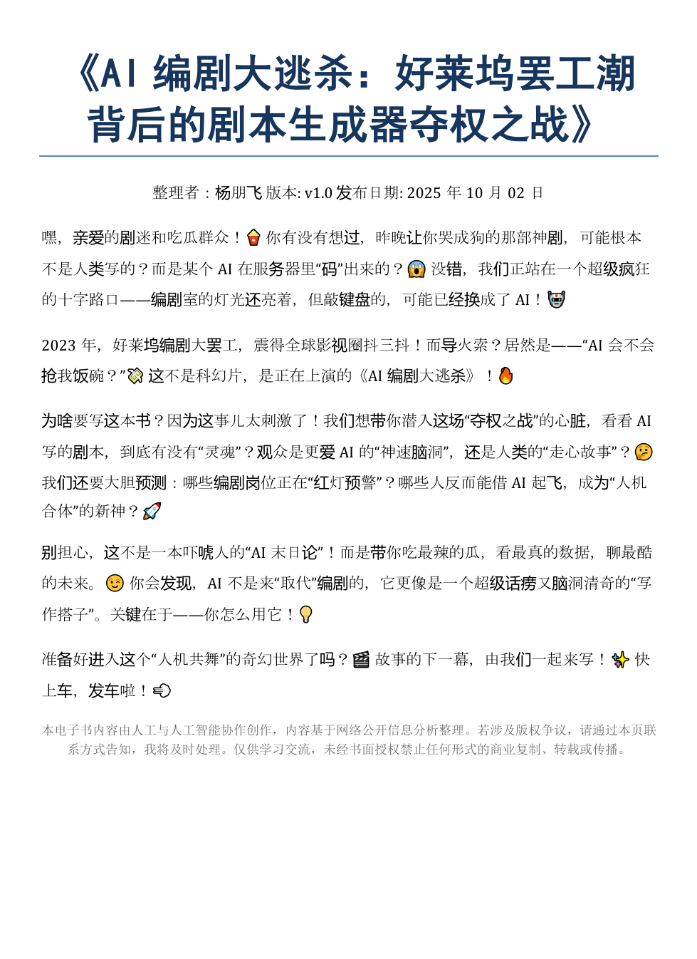 《AI编剧大逃杀:好莱坞罢工潮的剧本生成器夺权》AI智慧电子书